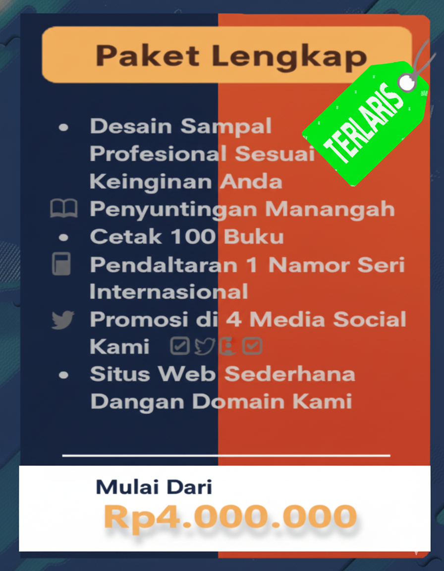 Paket Lengkap adalah paket komplit dimana anda akan mendapatkan desain sampul buku sesuai dengan keinginan, penyuntinga menengah dan profesional, cetak hingga 100 buku, didaftarkan kedalam 1 nomor seri internasional, promosi ke 4 jenis media sosial, situs web sederhada dengan domain kami, serta pastinya sudah berstandar ISBN.
